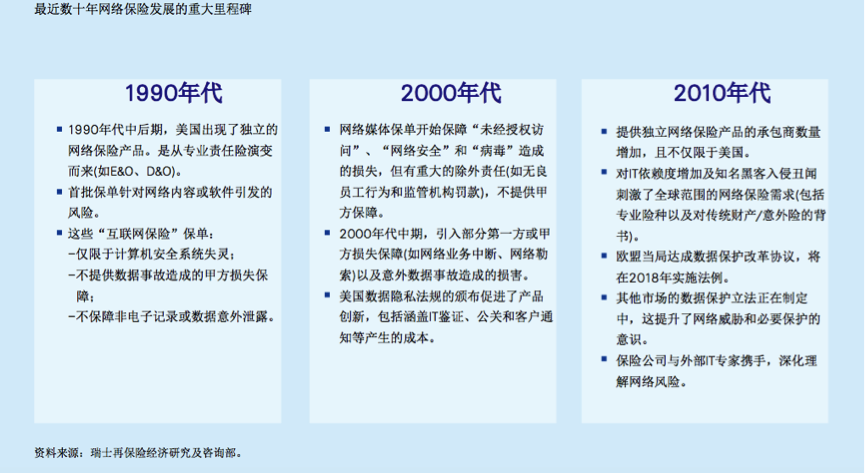 对于保险公司及再保险公司,网络保险均是发展最快的业务领域之一。在保险公司开发网络风险承保的定价工具的过程中,对总计风险的关注已提高。显而易见的是,网络保险的需求正在上升,保费总额快速增加。