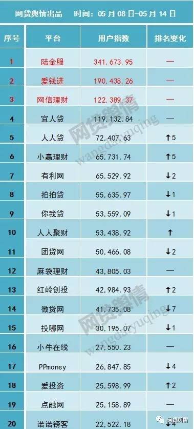 本期名次上升最快的是人人贷和小赢理财,两家平台名次均上升5位,升至前十,分别排在第五、第六名。