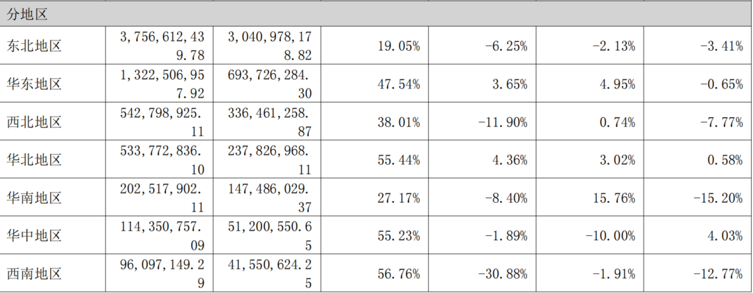 不过,吉电股份的转型依然面临新能源项目的盈利考验。分地区来看,仅华东地区、华北地区营收实现正增长,且分别微涨3.65%、4.36%,西南地区营收降了30.88%。