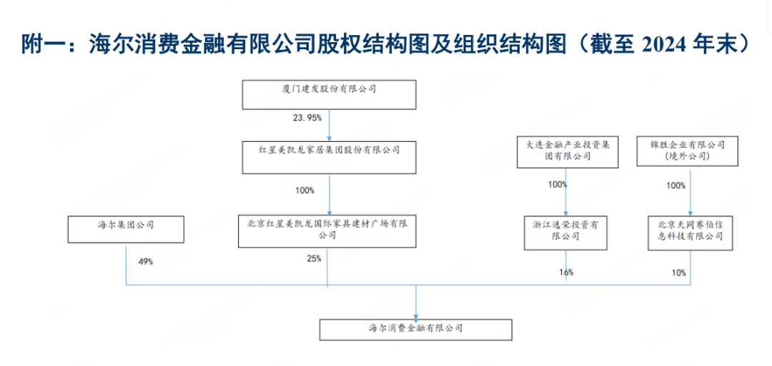 需要注意的是,2024年正式实施的《消费金融公司管理办法》对消金公司股权结构作出明确调整:将主要出资人持股比例要求从“不低于30%”提升至“不低于50%”。目前海尔消金股权结构尚未满足这一监管要求。