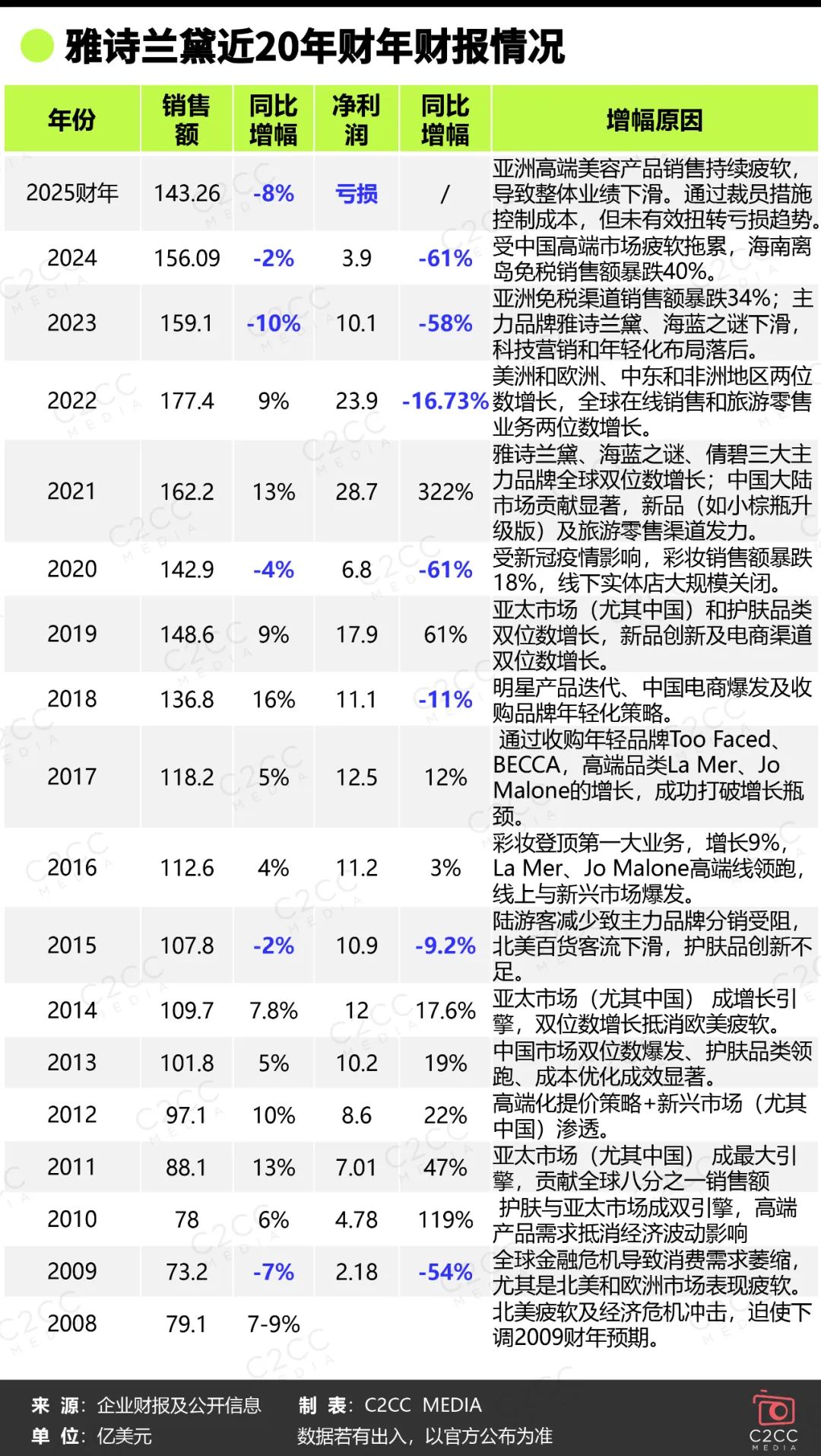 雅诗兰黛集团近20年财年财报情况