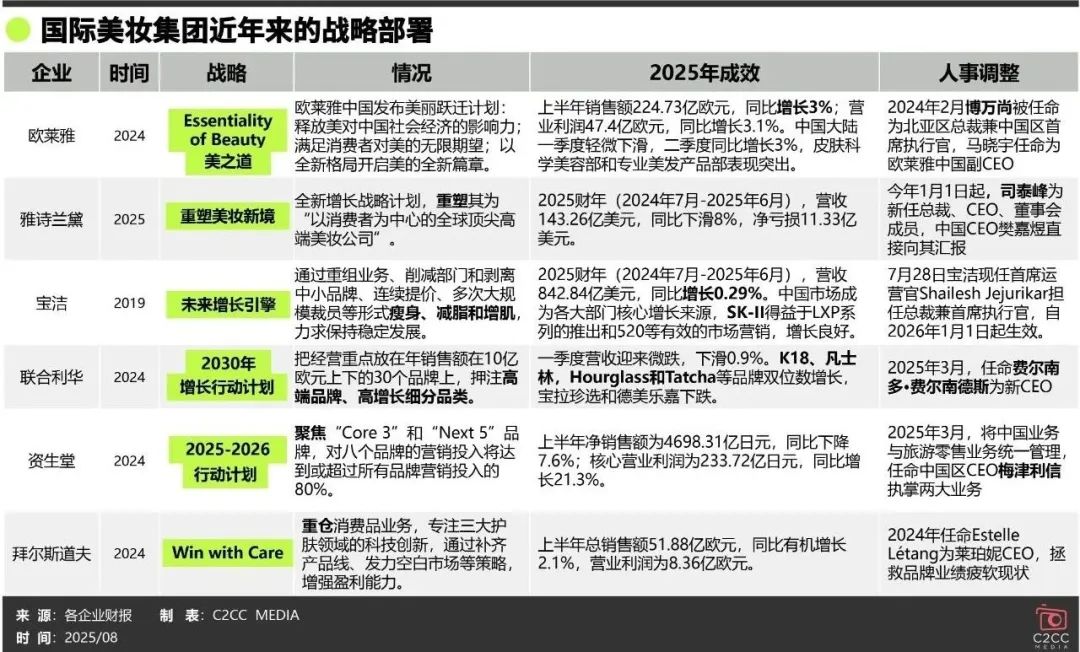 部分国际美妆集团近年来的战略部署