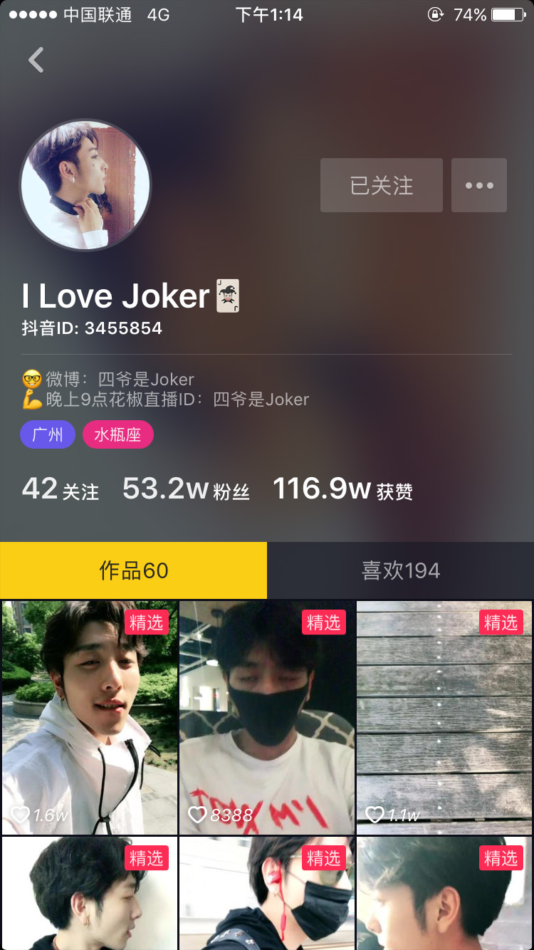 可以说,在抖音,想要一炮而红,拿到编辑推荐是最短路径了,杨洋就是最好的例子,在过去的一个月里,杨洋在I Love Joker这个账号共发布视频60余条,只有3条没有上精选,而仅仅是这60条视频,就让他获得了115.9万的赞。
