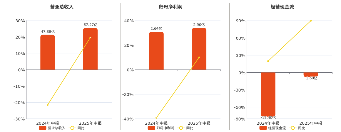 公司营业总收入为57.27亿元,在已披露的同业公司中排名第1,较去年同报告期营业总收入增加9.39亿元,同比较去年同期上涨19.62%。归母净利润为2.90亿元,在已披露的同业公司中排名第1,较去年同报告期归母净利润增加2634.26万元,同比较去年同期上涨9.99%。经营活动现金净流入为-1.60亿元,较去年同报告期经营活动现金净流入增加13.79亿元,实现3年连续上涨。