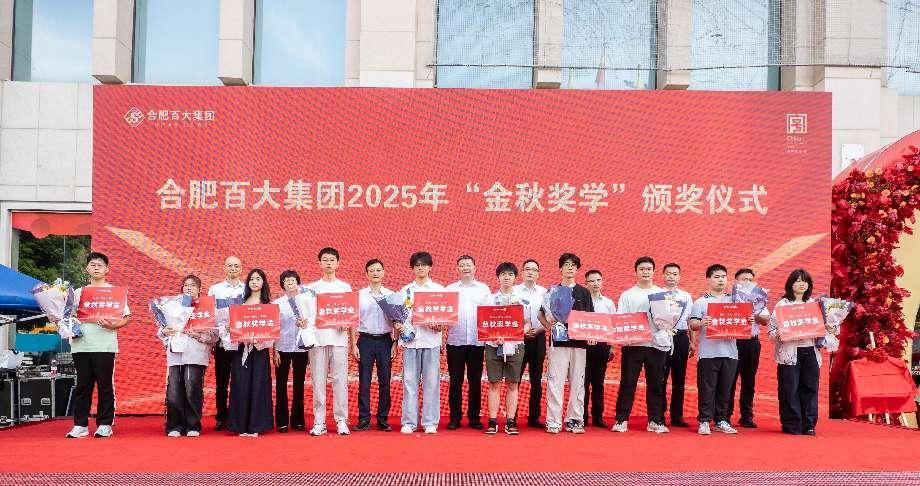 金秋筑梦,育才兴企。百大集团始终心系员工福祉,情系教育事业,集团领导为荣获2025“金秋奖学”的百大员工代表颁奖,祝愿受奖受助的莘莘学子学有所成,希望获奖员工事业竞新。合肥百大集团将一如既往践行社会责任,厚植人才沃土,点亮学子成才之路。