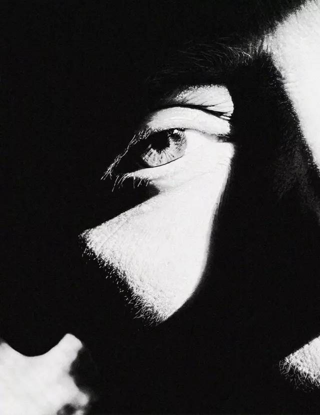 眼睛在光影中深邃摄人。