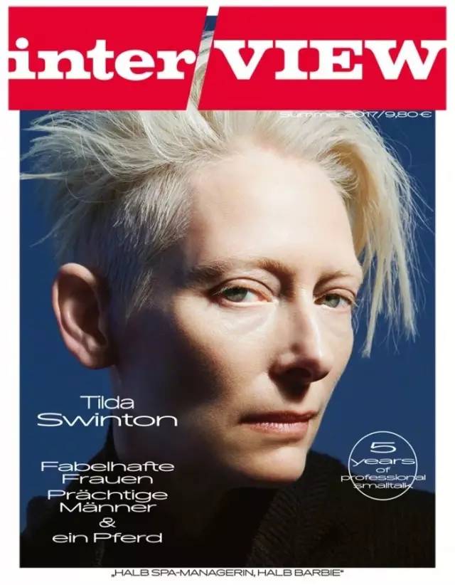 德版《Interview》封面本期邀请了文艺女王蒂尔达·斯文顿,演绎中性之美。发型帅气十足,造型个性依旧。棱角分明的面孔以及强大的中性气场,不愧是古一法师的不二人选。