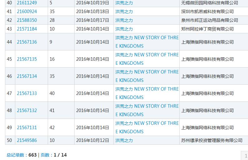 该词在商标行业内火爆一时,不但被注册为商标;还被注册为公司名称:洪荒之力企业管理有限公司、佛山市洪荒之力咨询服务有限公司;还有注册了洪荒之力域名等等。