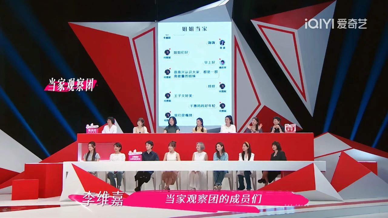 观点的直接碰撞和在场,也体现在《姐姐当家》的观察室设置上。除了常见的主持人发表观点、推动流程,各位姐姐亲友来现场观察外,根据不同的内容,《姐姐当家》有侧重的邀请不同的观察嘉宾,比如,王琳暴露出单亲母亲的孤独感时,坐在观察室的是同样为单身母亲的王子文,而当节目播到万千惠创业的直播公司遭遇危机时,同样有创业经历的张泉灵成为了观察室嘉宾。