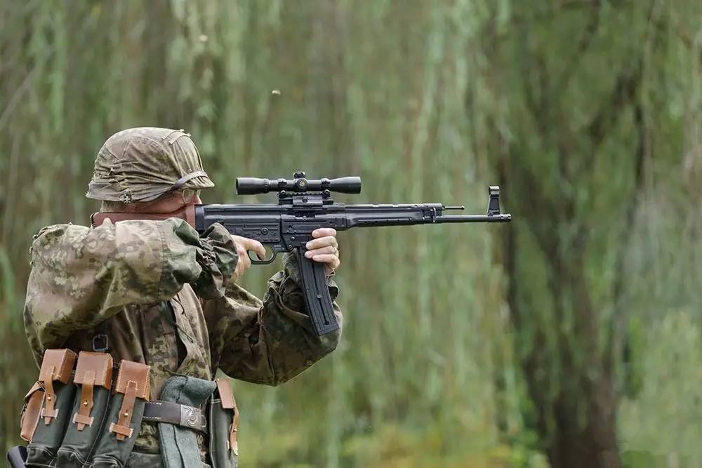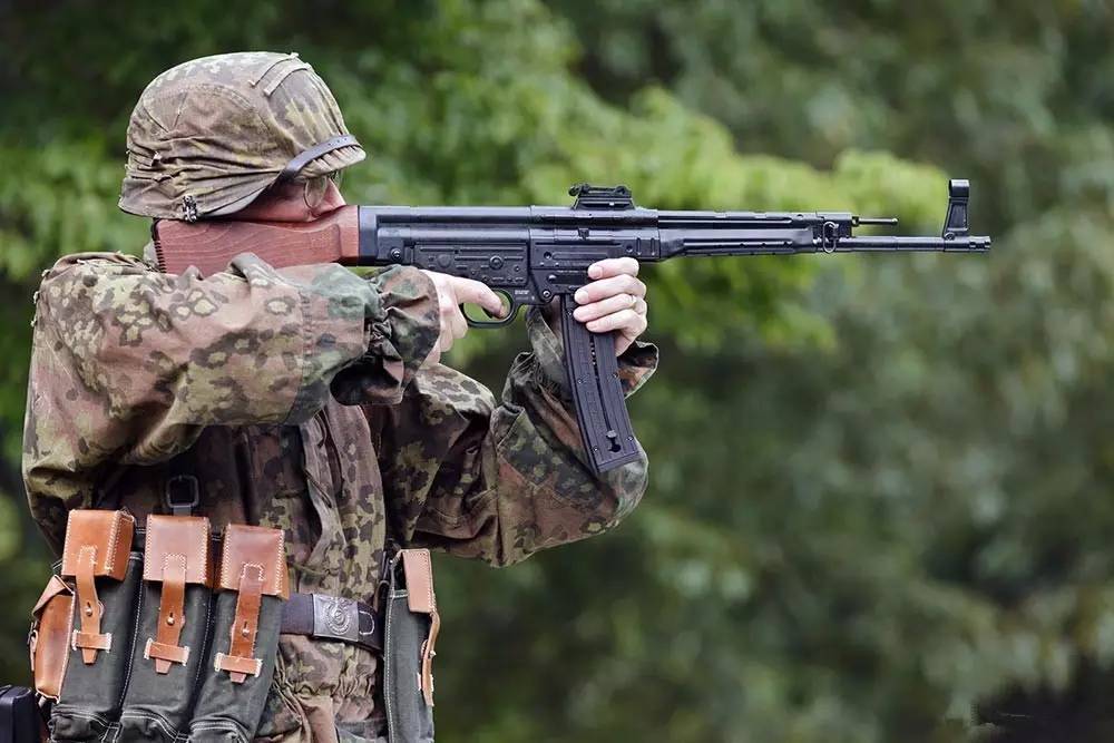 Stg44突击步枪是现代步兵史上划时代的成就之一,Sturmgewehr 44意指:风暴突击步枪1944年型,这也是“突击步枪”一名的由来,它是第一支使用了7.92×33毫米短药筒的中间型威力弹并大规模装备、真正意义上的突击步枪。