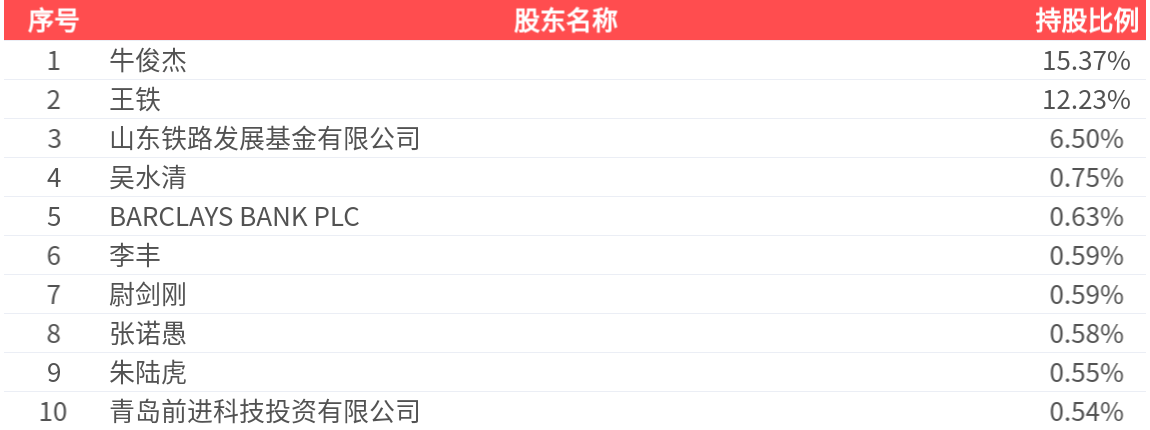 公司股东户数为2.83万户,前十大股东持股数量为2.24亿股,占总股本比例为38.32%,前十大股东持股情况如下: