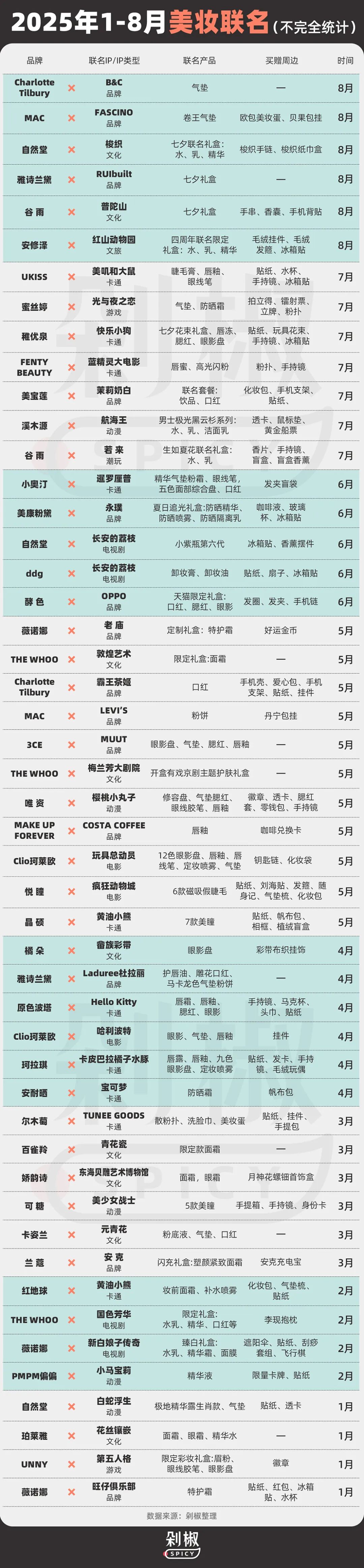 剁椒走访、观察发现,对比2023年时一度火热过的IP联名潮,今年美妆行业联名也呈现出不少新特点: