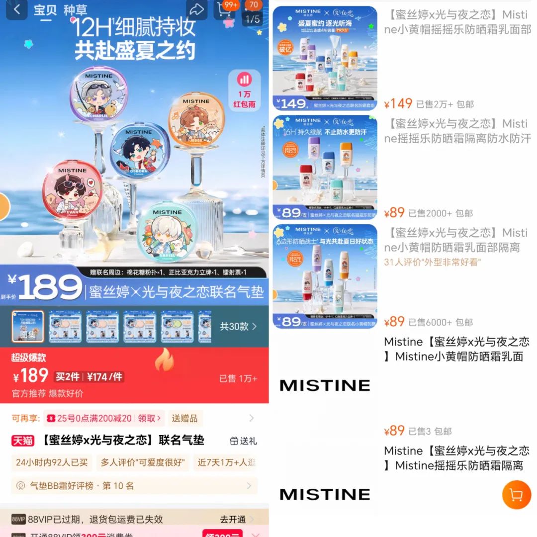 还有7月与《光与夜之恋》展开联名的蜜丝婷,目前,其联名品销售额已超过558万。