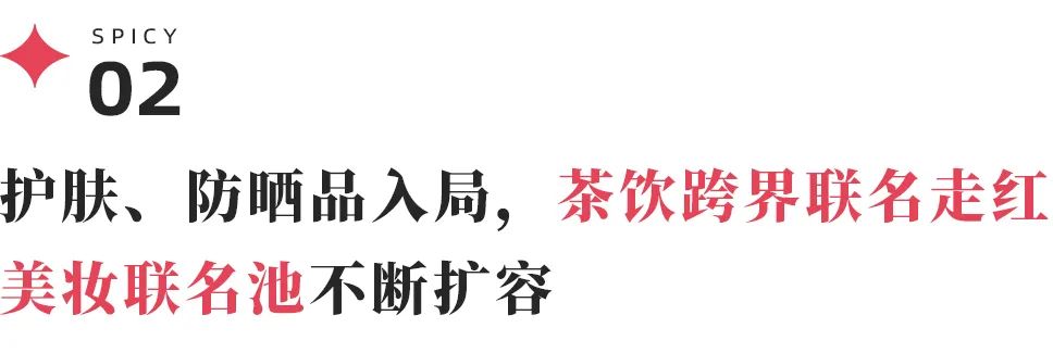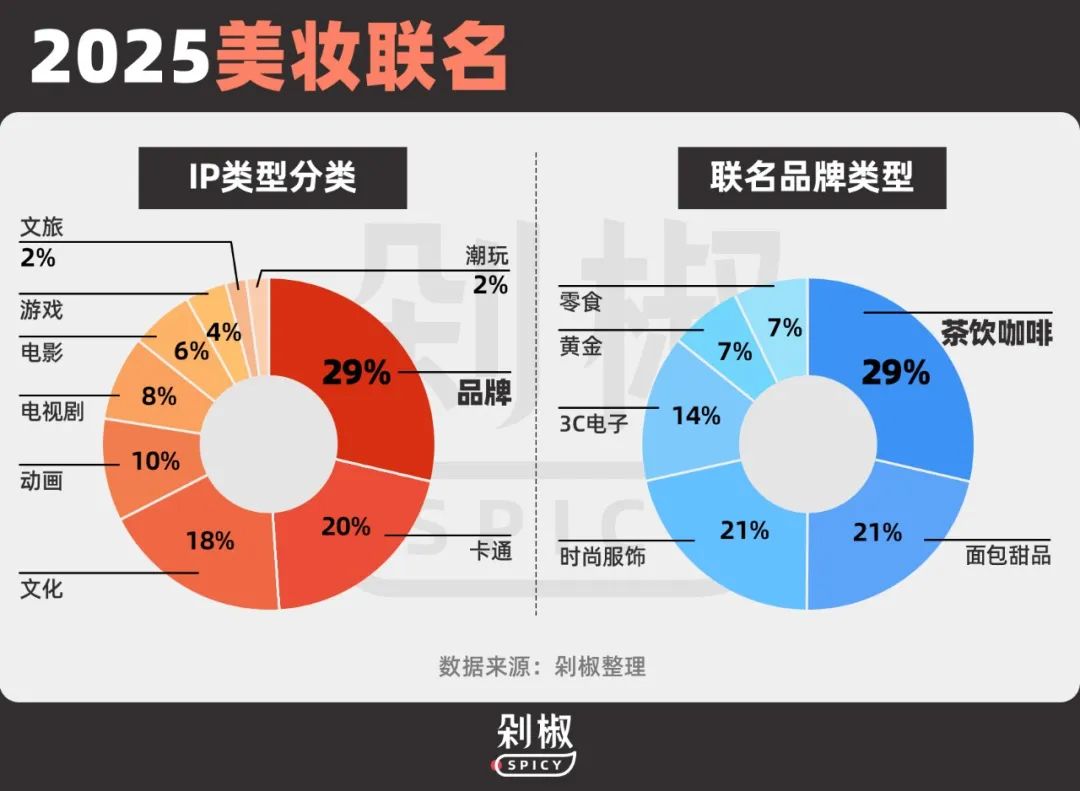 其中,尤其以茶饮和甜品因此,2025年的一众美妆联名中,类跨界合作最多,占比达到一半。茉莉奶白、永璞、霸王茶姬、COSTA均与美妆品牌展开过联动。