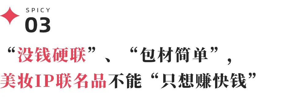 3.部分具备购买力的垂类圈层IP用户,对联名品的质量和创新要求越来越高,美妆行业的周边开发能力、服务态度等还并不完善。