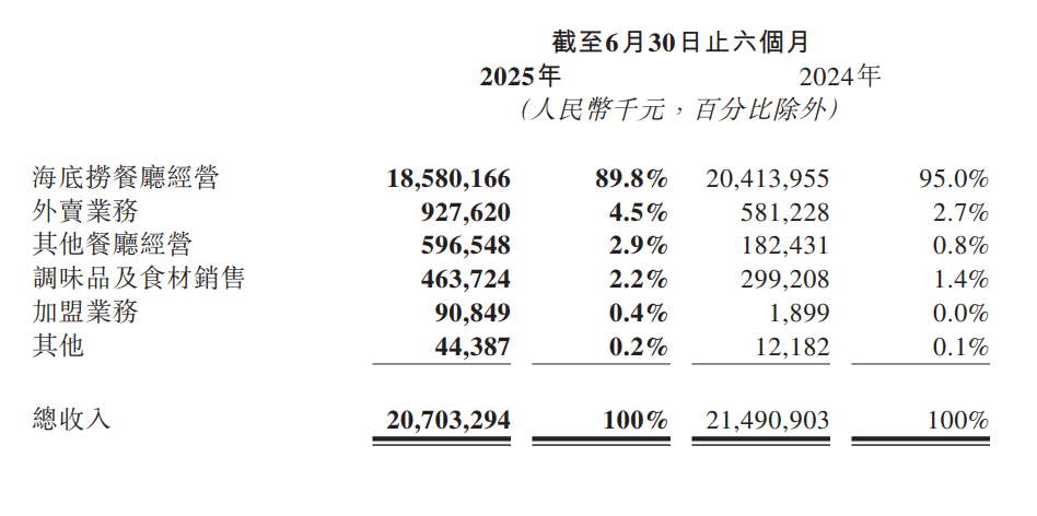 图片来源:海底捞半年报截图