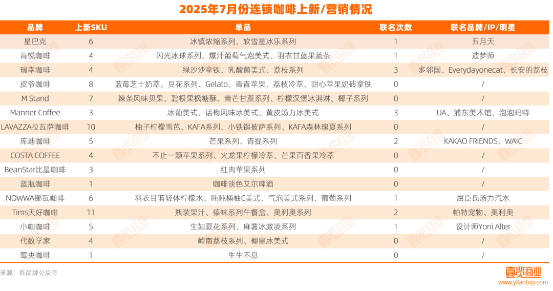 与6月相比,7月咖啡市场热度攀升,共有10个品牌开店速度加快。