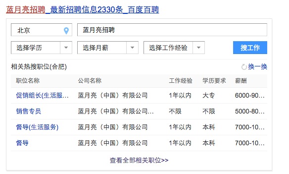 查询蓝月亮5月16日发布的最新招聘信息显示,其正在大量招聘促销员、督导等员工,这些都是大卖场渠道需要的工种。很可能是在为重新进入其它大卖场做准备。