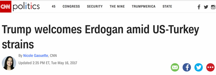 美国和土耳其两国关系近来摩擦不断。美国曾拒绝引渡现居宾夕法尼亚州的土耳其教士居伦,而居伦一直被埃尔多安指责组织了去年7月的政变。近日,特朗普又授权国防部武装叙利亚库尔德人以打击在叙利亚拉卡周边的极端组织“伊斯兰国”(ISIS)分子。但土耳其认为美国决定武装的军队是库尔德工人党的延伸。在美国、土耳其和欧洲,库尔德工人党被视作恐怖组织。