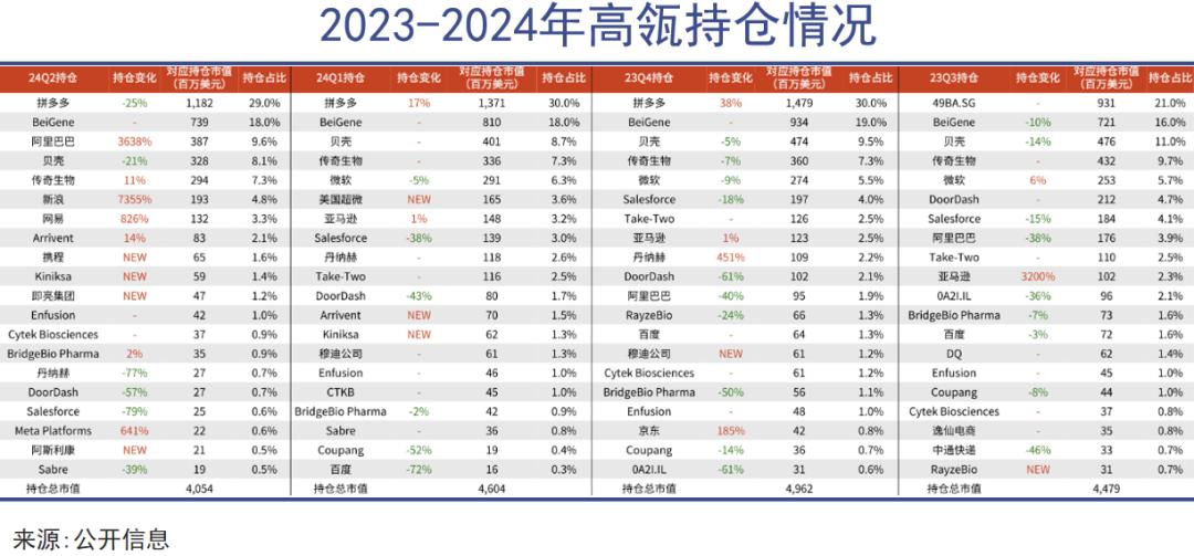虽有实时调整,但高瓴的投资偏好保持了长期的一致性,像阿里和拼多多这种互联网消费的代表,以及中国创新药的代表百济神州、传奇生物,都愿意长期持有。