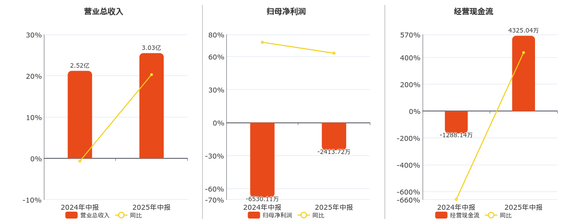 公司营业总收入为3.03亿元,在已披露的同业公司中排名第31。归母净利润为-2413.72万元,在已披露的同业公司中排名第35。经营活动现金净流入为4325.04万元,在已披露的同业公司中排名第21。