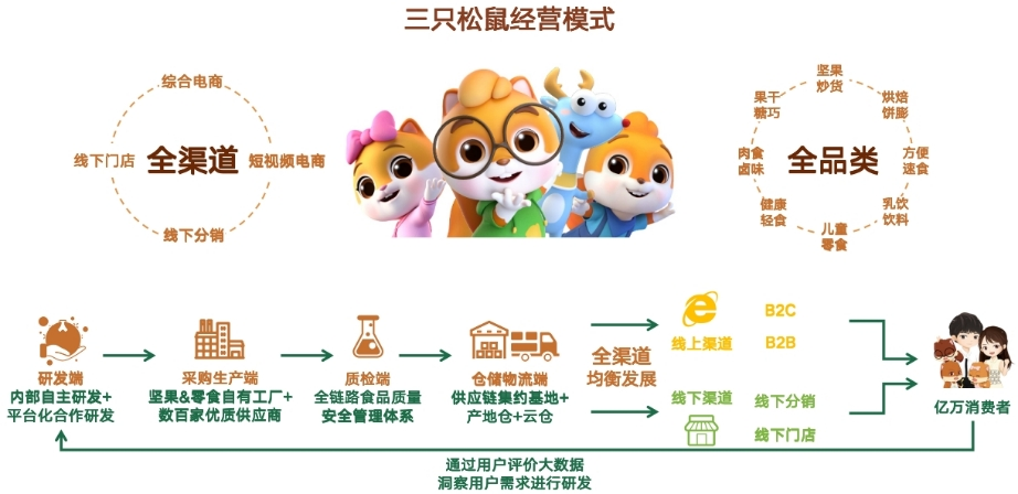对三只松鼠而言,从深度践行“高端性价比”战略到创新提出“制造、品牌、零售”一体化,跳出传统单点提升渠道、产品思维,正在为行业破局探索新路径,也为成为一家“耐力长跑型”企业累积着强大势能。创始人章燎原曾公开表示,三只松鼠最终目的是成为一个超级供应链公司,“无论何种商品都是供应链输出的,品类、零售终端都是我们的手段。”