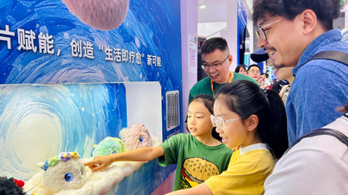 国外观众在IOTE展上现场体验“超级球球”的疗愈对话能力