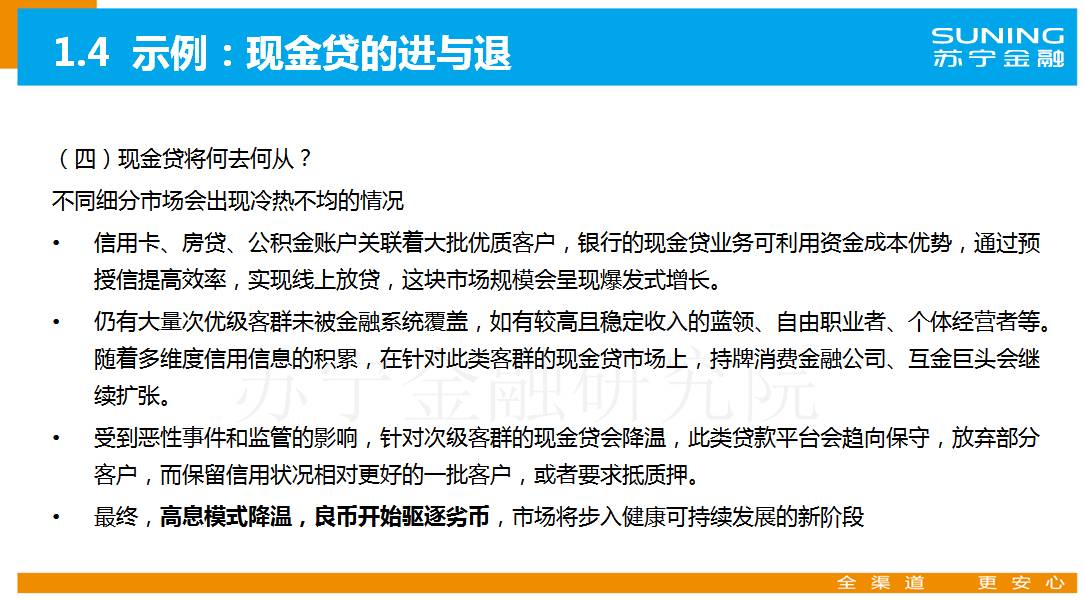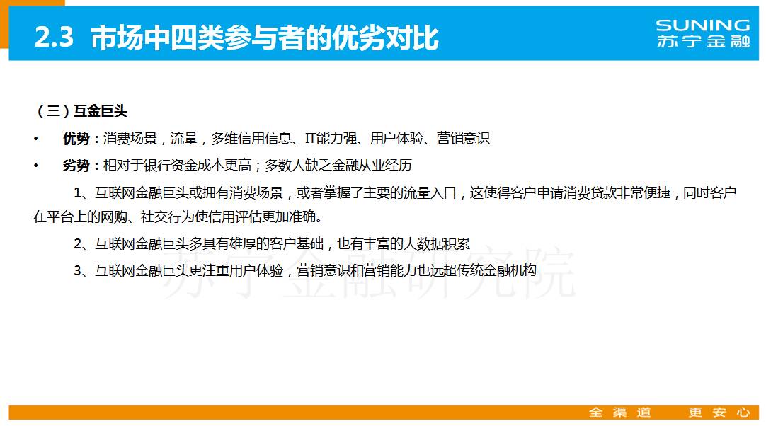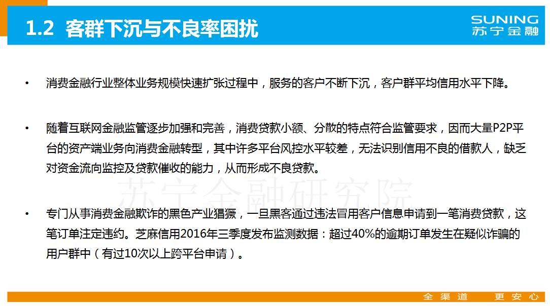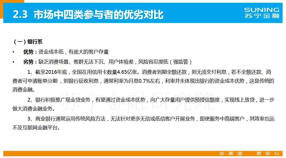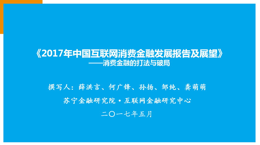在此背景下,苏宁金融研究院独家发布了这期《2017年中国互联网消费金融发展报告及展望》,在回顾消费金融的历程与一些问题的同时,我们认真研究了业内主流的经营模式和代表性产品,并对未来的行业发展做出了预判。