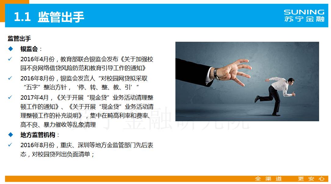 监管的出手是有征兆的,一方面,自2015年下半年开始,监管密切关注互金风险,同时,整个金融体系也都处于防风险、控杠杆的高压状态下;另一方面,自2016年起,校园贷引发的争议就一直没有停息,而消费金融高利贷化引发的问题也是层出不穷。如此,监管不出手才怪。