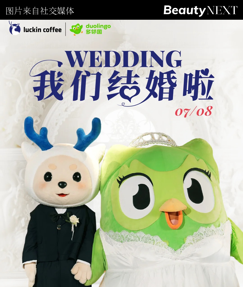这里用一个美妆之外的例子——一语言学习软件多邻国,通过一个绿色的猫头鹰(小名“多儿”)进行IP营销,多领国以其抽象、有趣的“活人感”风格,极大程度带动学习平台出圈。
