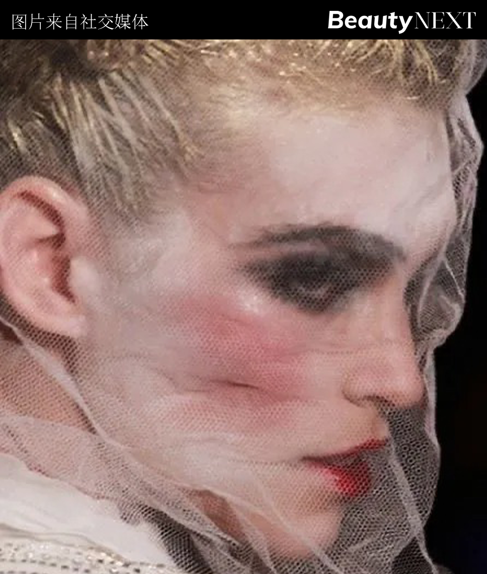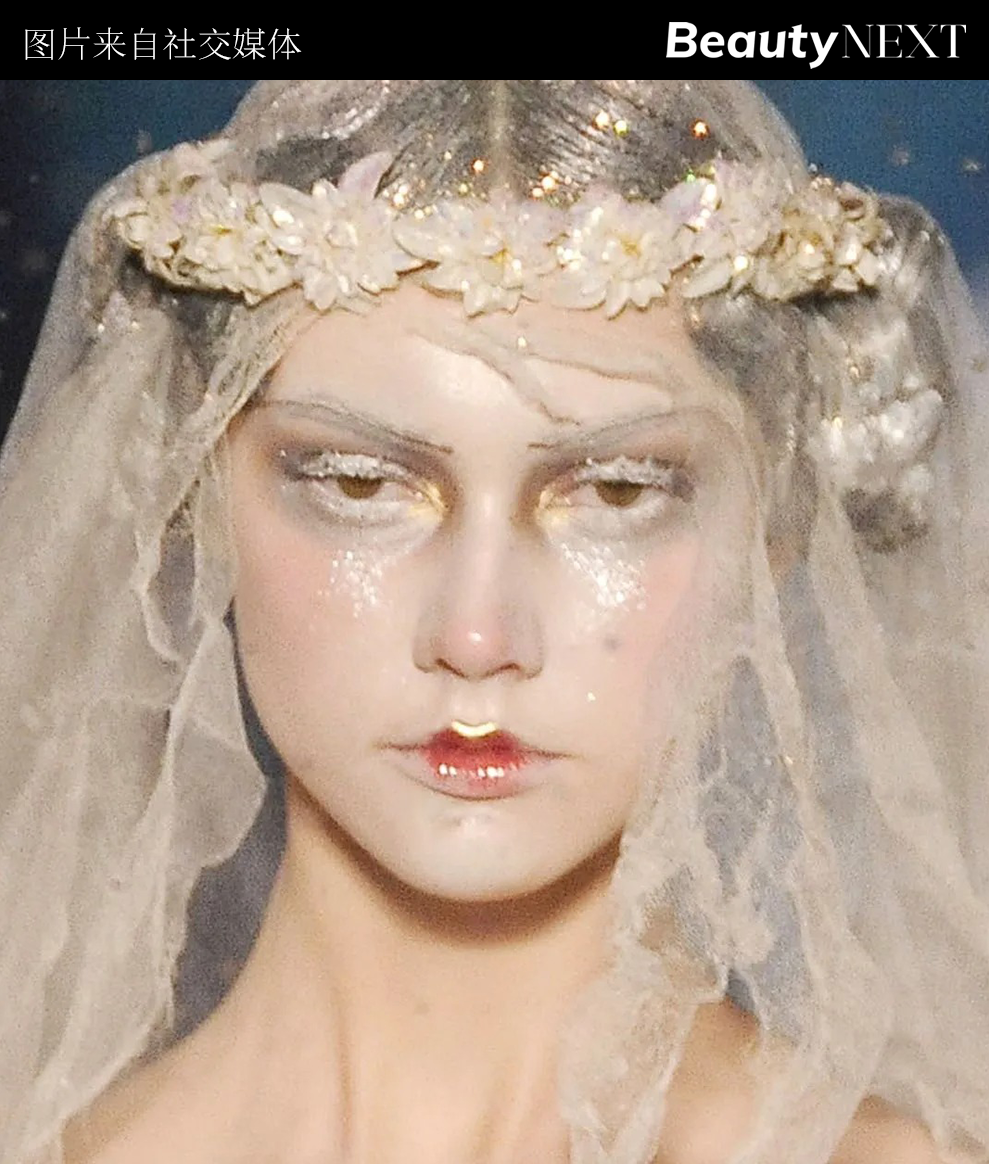 首先是对80年代妆容元素的借鉴,细眉、烟熏妆、唇线、大亮片眼影,这种频频出现在八九十年代的妆容元素,在2025年再次重现。