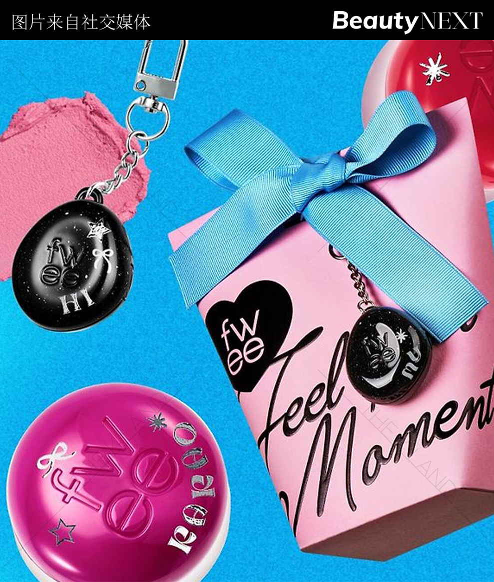 它通过视觉与触觉的微妙变化,制造使用前和使用中的愉悦感。例如韩国彩妆品牌fwee,凭借可以当挂坠的钥匙扣唇泥、塑料糖果纸包装,在多个国家卖断货,成为出海最成功的“新韩妆”之一。