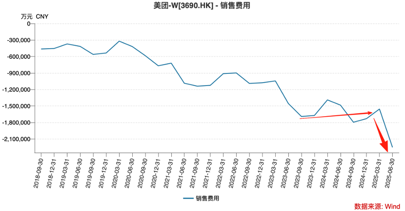 2025年Q2则完全不同,该季度市场费用同比激增51.8%,达到225亿元,占收入比从上季度的18%增至本季度的24.5%,换来了核心本地商业7.7%,集团11.7%的同比增速。