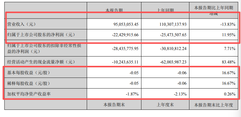 上半年,金现代实现营收9505.31万元,比起去年同期的1.10亿元,减少13.83%;归属于上市公司股东的净利润为-2242.99万元,虽然与去年同期的-2547.35万元相比数据收窄,但仍处于亏损的境地。