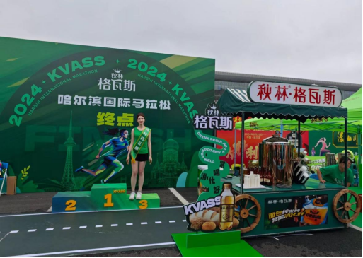王明君:秋林格瓦斯不仅在赛道上设有多个能量补给站,让全国跑友感受哈尔滨最神奇的味道,而且秋林格瓦斯拥有四台改装的“大篷车”,成为了我们参加哈马得天独厚的硬件资源。在软件方面,多年来我们组织了非常精彩的俄罗斯歌舞表演、乐队、泳池派对、COS狂欢等众多节目,充分地展示了哈尔滨城市的异域风情,使秋林格瓦斯“大篷车”成为了哈尔滨马拉松活动的重要组成部分。在本次活动中,秋林格瓦斯在半程、全程、马博会点位均设置品牌活动展区,其中模拟比赛终点颁奖场景,可以让参与的跑手和现场的观众过一把“获奖”瘾,现场有“超大”的一米奖杯、奖牌,跑友们可以看独具特色的节目、喝格瓦斯特色饮品,欣赏一路优美醉人的景色,一定会给全国跑友留下难忘的马拉松体验。