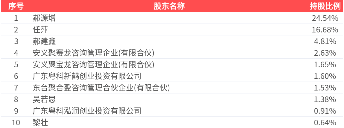 公司股东户数为1.01万户,前十大股东持股数量为2694.22万股,占总股本比例为56.37%,前十大股东持股情况如下: