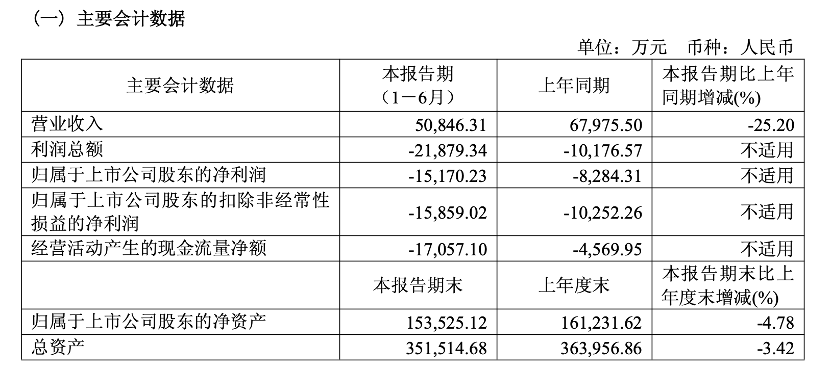 今年上半年,埃夫特实现营业收入5.08亿元,同比下降25.20%;归母净利润-1.52亿元,同比减少83.12%;扣非净利润亏损1.59亿元,同比减少54.69%。