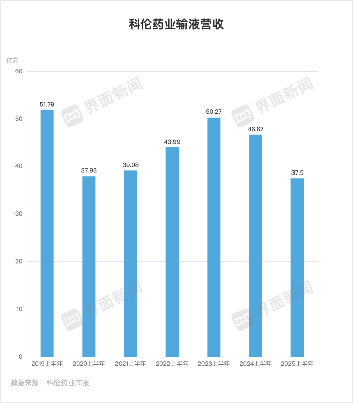 科伦药业大输液业绩增长遇阻。据半年报,2025年上半年,科伦药业输液业务实现销售收入37.5亿元,同比下降19.65%。