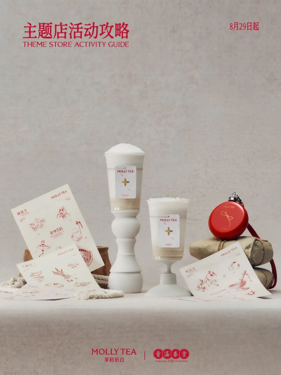 联名端,瑞幸推出玫瑰系列新品,继线条小狗、LOOPY后延续策略联名艾丝乐小兔;霸王茶姬上线“凤凰于飞”限定杯身设计,购买套餐随机赠磁吸冰箱贴;CoCo都可与美妆品牌方里推出联名限定套餐;茉莉奶白与童涵春堂联名上线“爱情灵药”主题限定饮品;奈雪的茶则与《如鸢》联动。