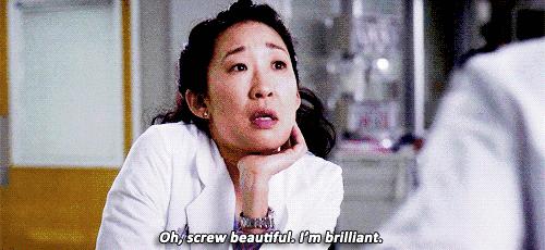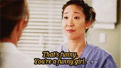Yang是剧迷心中的头号“逗比”,好像她的每个动作都可以做成表情包。她不按常理出牌,会在洗碗时突然戴上耳机热舞一曲,会把失恋的Callie的头发剪下来,会给自己的实习生用数字和小矮人的名字来编码,可以说她不但是剧迷眼中最努力最认真的人,同样也是最有趣的人。