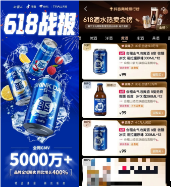过去一年,会稽山在抖音、小红书上频繁亮相,并与抖音超头部达人白冰、明星吴彦祖等合作。今年“618”期间,“一日一熏”气泡黄酒全网GMV突破5000万元,同比增长400%。此外,“一日一熏”系列产品包揽了抖音《618酒水热卖金榜之黄酒榜》TOP1至TOP3。