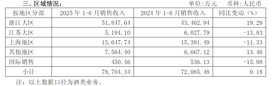 今年上半年,浙江大本营市场为会稽山贡献了主要的营收增长,而作为其核心市场的上海地区,却出现业绩下滑的现象。