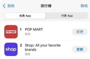 四个月前,泡泡玛特App在美国App Store购物榜首次登顶后,多次登顶该榜单。