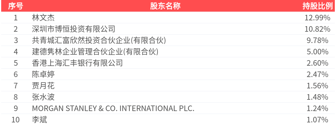 公司股东户数为1.18万户,前十大股东持股数量为1.70亿股,占总股本比例为49.01%,前十大股东持股情况如下: