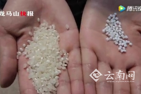 云南网记者还注意到,视频中的网友将从大米中发现的白色颗粒物和大米同时放置于掌心,两种物体的颜色截然不同。网友表示,这些白色颗粒物用火燃烧以后呈现胶状,而不是粉末,煮熟以后很难发现两者的区别。