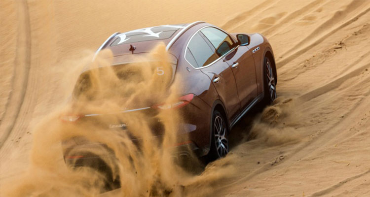 本次玛莎拉蒂为Levante选择了京郊的天漠作为试驾场地,这是群山之中突然冒出的一片小沙漠,正好也是学习新驾驶方法的好机会。要注意的是,不同于其它路况,在细软的沙地上驾驶,为了获得更好的抓地了,要事先给轮胎放气,以增加轮胎与沙地的接触面积,减少轮胎打滑、防止陷车。其次,在越野界有句口诀,叫“快走沙、慢过水”,意思就是在沙漠行驶时要保持一定的车速,车辆带着惯性才不容易陷车,并且起步时切忌大脚油门,那样只会让车辆陷入绝境,沙漠中停车也很有讲究,千万不要在上坡时停车,那样几乎就是给自己挖坟,尽量选择下坡位置,勿大脚刹车、慢慢收油,利用沙子的阻力是车辆停止。