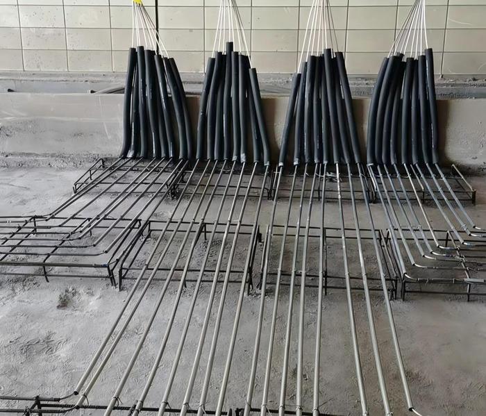 为实现保通目标,乐西高速项目团队在该路段创新应用了智能化环路热管融雪系统,在雷波段布设27段共92组热管,总覆盖长度2374米,将直径8毫米的热管,精准埋设于路面结构层以下15厘米处,并在主车道轮迹带布设热管,最大限度降低融雪能耗。当传感器监测到低温或降雪时,系统将自动启动空气源热泵,将热能介质加热至50-60℃,通过热管高效传导,将轮迹带温度稳定维持在1-2℃的安全融冰范围内,实现冰雪自动融化。