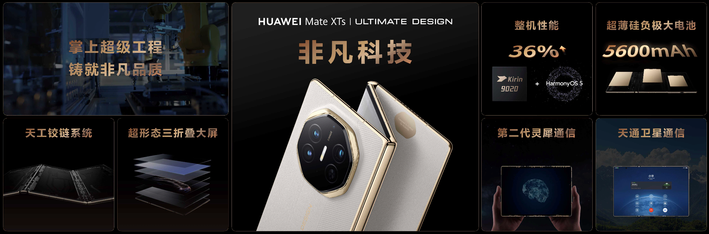 9月4日,华为发布新一代三折叠手机Mate XTs 非凡大师,售价17999元起。新一代三折叠最大的亮点之一,是在鸿蒙系统的加持下,首次将PC版应用和PC级交互带到了手机中,搭配全新手写笔和AI语音助手小艺,真正将大屏的价值发挥到极致,也拓宽了移动生产力的边界。