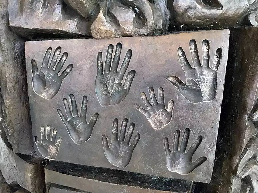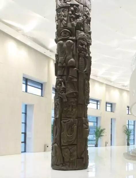 每次来国家话剧院看演出总是会被大厅的“剧神之柱”所吸引,这次也忍不住想多看几眼。这一根青铜雕塑的柱子,一直通到剧院的最上面。柱子上用戏剧艺术的抽象符号展现的人间百态,感觉整座铜柱子蕴含着戏剧人生所特有的起伏跌宕、扑朔无常,有一种戏剧图腾的感觉。雕塑下方的掌印,据说是知名国话人所留,既有创造舞台辉煌的国话艺术巨匠,也有初登舞台崭露锋芒的小小童星。
