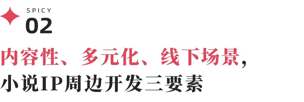 番茄小说IP负责人李茜茹告诉剁椒Spicy,题材并不是开发时的判断标准,“我们更关注的是这个小说内容在未来几年是否有多体裁的开发预期,比如动画、影视、出版等。我们希望能够结合多体裁内容上线周边,来打造爆品showcase。”